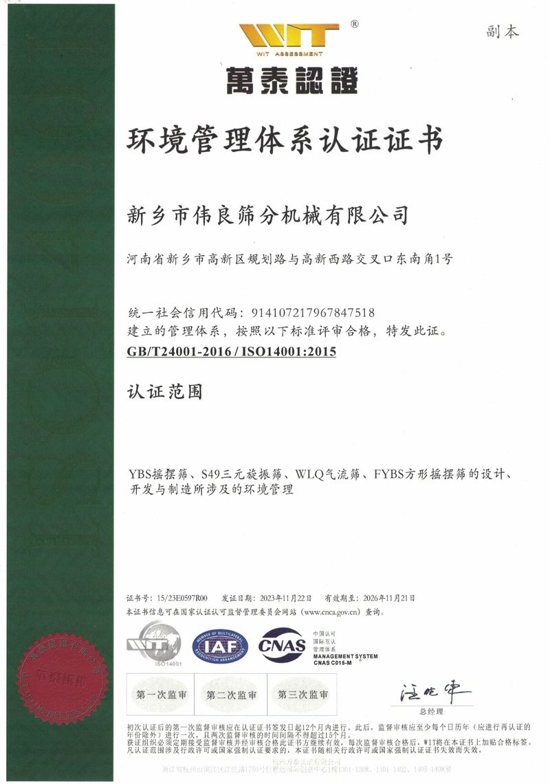 環(huán)境管理體系認(rèn)證證書